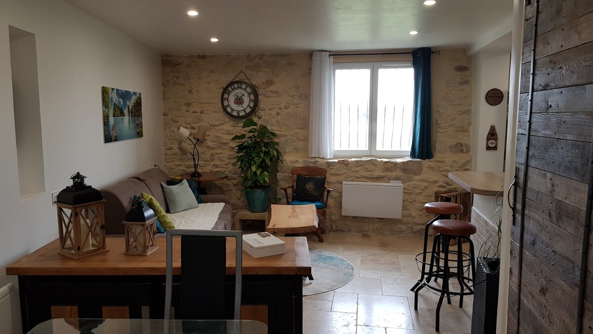 Nuestro alojamiento de 45 m2, muy limpio, con aire acondicionado y tranquilo, es completamente nuevo en la planta baja de un antiguo edificio, donde se está completamente independiente y en intimidad. El interior es acogedor con piedras a la vista y madera: entrada, habitación principal, pequeño dormitorio con cama tamaño queen, con vistas al baño y al patio interior, pequeño jardín con vistas a los campos. Estacionamiento gratuito en frente. Se admiten mascotas. A 20 minutos de Aviñón, a 10 minutos de Marcoule. Llegada y salida independientes