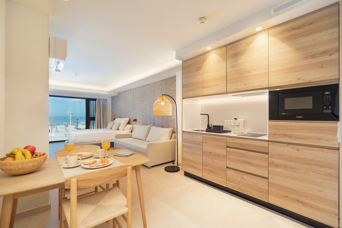 Nuestros apartamentos se sitúan en un moderno y nuevo complejo de 3 plantas, con apartamentos tipo loft y diseño minimalista. El edificio dispone parking privado y servicio de lavandería sin coste adicional. Cocina totalmente equipada, wifi de alta velocidad y climatización. Se encuentra a tan sólo 300 m de la playa ya 150 m del Aparthotel La Espadaña , del cual podrán hacer uso de sus fantásticas instalaciones como piscina o restaurante.