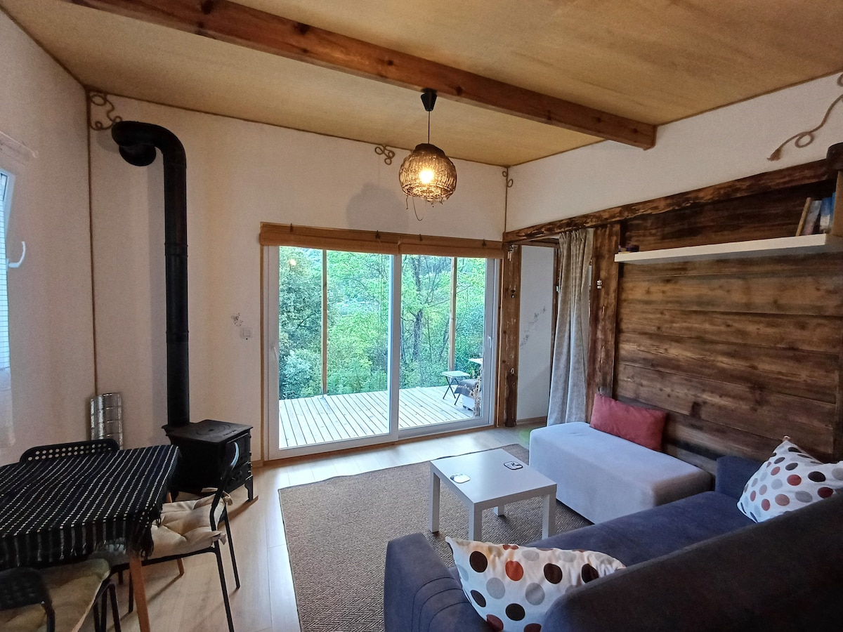 Nuestra casa de madera se encuentra en un gran jardín privado y tiene su propio estacionamiento. Es un jardín tranquilo y tranquilo. La casa está rodeada de olivos. El alojamiento independiente. La casa está totalmente equipada, se proporcionan ropa de cama y toallas. La casa tiene un dormitorio separado, un baño y una sala de estar de planta abierta. El jardín está muy cerca de los principales sectores de escalada en Geyikbayırırı. (5 a 15 minutos). Tiene su propio estacionamiento. Rodeado de árboles... La vista a la montaña desde la terraza. Cerca del río(a 3 minutos)