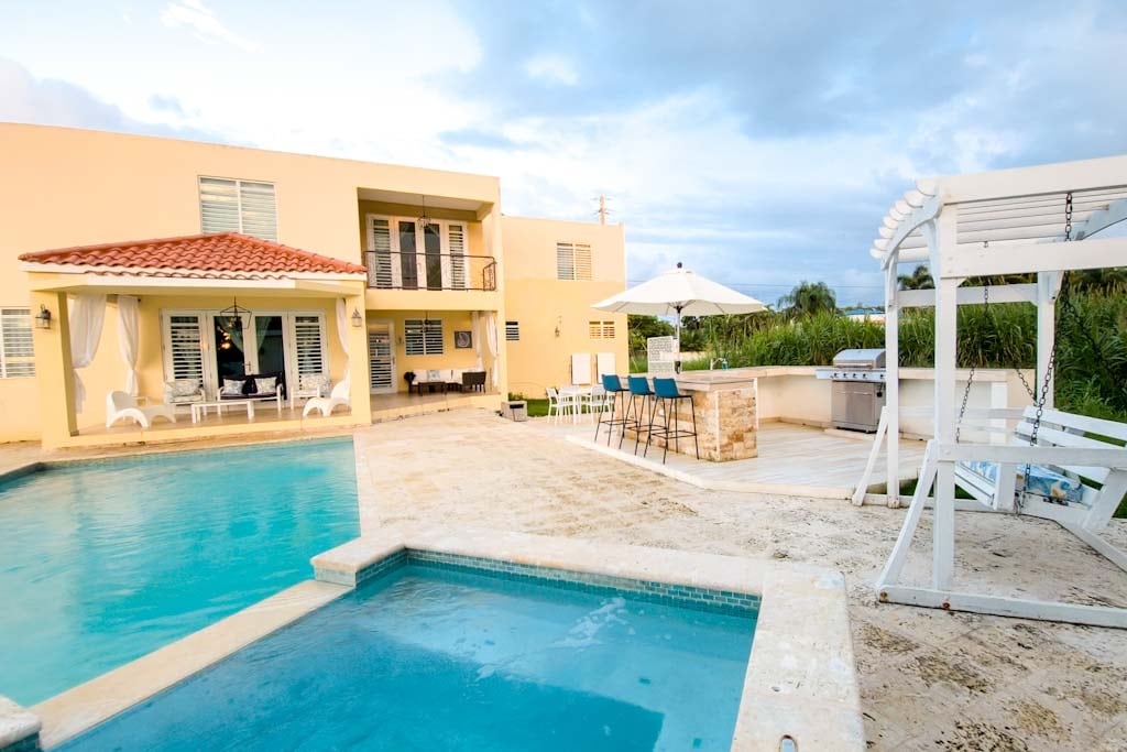 Residencia ideal para relajarse y disfrutar en familia. La propiedad incluye sala, comedor, 3 habitaciones con aire acondicionado, 2 baños, amplia cocina equipada y marquesina. Además incluye barbacoa, piscina, calentador y WiFi !! Se encuentra a minutos del aereopuerto, hospital, centros comerciales, farmacias, panaderías, comidas rápidas, restaurantes, playas y mucho más. Perfecto para disfrutar con familiares y amigos!