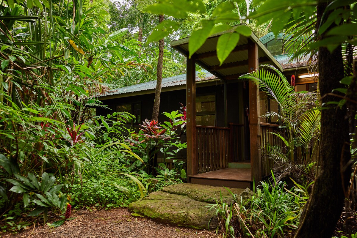 Rose Gums Wilderness Retreat es un paraíso para los amantes de la naturaleza donde un clima tropical fresco se ve realzado por el polo privado y el alojamiento de madera con vistas a la espectacular selva tropical y el paisaje de montaña. Los huéspedes pueden explorar los 9 km de senderos a pie desde su puerta hasta los prístinos arroyos de la selva tropical donde reside el ornitorrinco. Descubra una encantadora cascada, abundante vida silvestre como el Casuario en peligro de extinción, el canguro más pequeño del mundo y más de 160 especies de aves. Estamos a solo 90 minutos de Cairns.