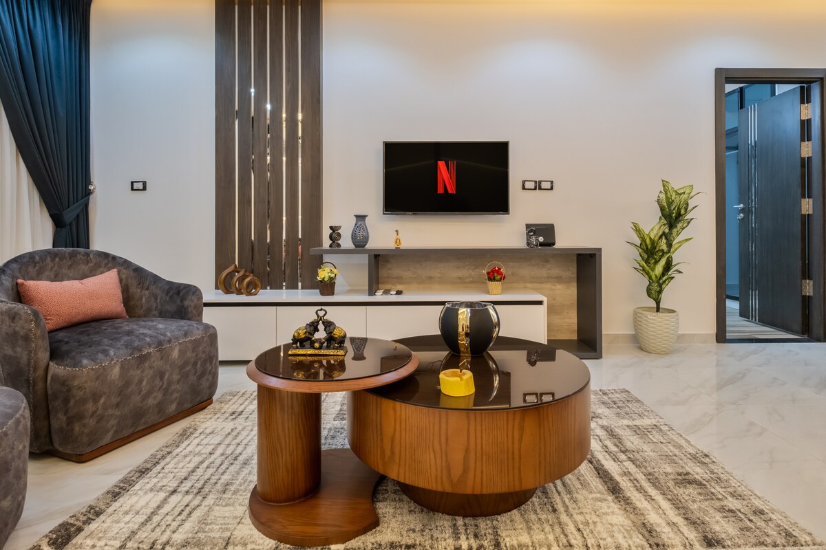 Tu familia estará cerca de todo cuando te hospedes en este lujoso apartamento céntrico en Dokki. A pocos pasos del Shooting Club, el Nilo y Zamalek, este moderno espacio ofrece comodidad, estilo y conveniencia para los viajeros que buscan una estancia de primer nivel en el corazón de El Cairo.