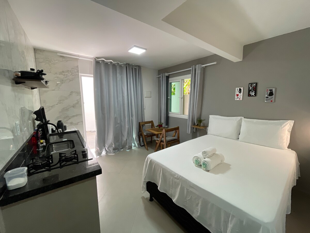 ¡Bienvenido! ALÉM DOS SONHOS IV es una acogedora suite en el primer piso con cocina y 1 cama doble, aire acondicionado y baño privado. Excelente y tranquila ubicación. A 30 metros de la plaza principal y a 5 minutos de la primera playa. Cerca de la naturaleza. Proporcionamos ropa de cama y baño completa y nos encargamos de tu reservación de principio a fin. *posible añadir desayuno por separado *tenemos asociaciones con agencias locales para excursiones y traslados *NUEVO: hemos instalado una TELEVISIÓN INTELIGENTE :)