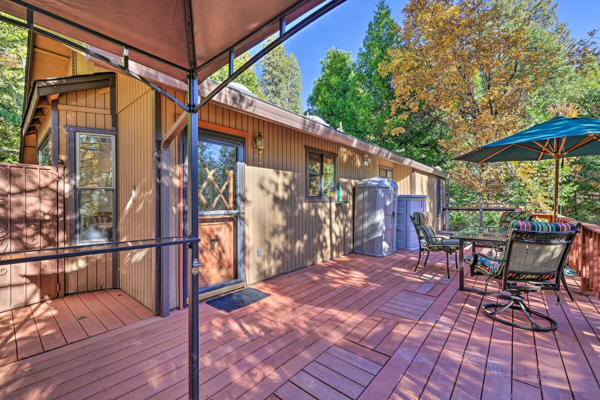 Terraza con vistas al bosque: ¡Tranquila cabaña en Twain Harte!