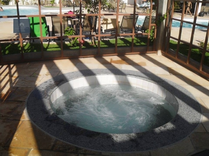 2 dormitorios con aire acondicionado; 8 piscinas de agua caliente gratuitas (una con toboganes para niños y otra con barra mojada); 2 jacuzzis; y una sauna húmeda; Cocina en el apartamento con cubiertos, platos, estufa, horno eléctrico, nevera y microondas; Estacionamiento grande y gratuito (para varios autos); 2 baños; sala de juegos; Gimnasio; cancha de fútbol y campo; Wifi en el departamento, en la recepción del condominio y en las áreas de la piscina; Junto al club Lagoa Termas Parque (a poca distancia)