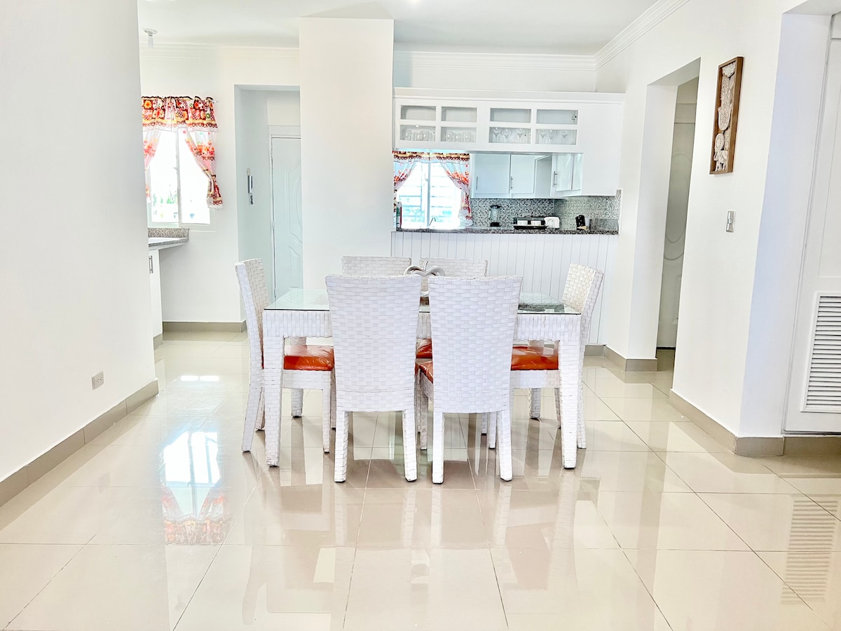Ven a disfrutar de un merecido descanso, con el ambiente ideal de relajación y hermosos atardeceres en la playa. El apartamento es perfecto para familias con niños que puedan disfrutar la diversión del parque acuático. Remodelado apartamento en un segundo piso, camas de primera calidad, muy cómodas, totalmente equipado y renovado. Internet, TV pantalla plana. Ubicado a pocos metros del restaurante, el bar, playa, piscina, minimarket y la iglesia