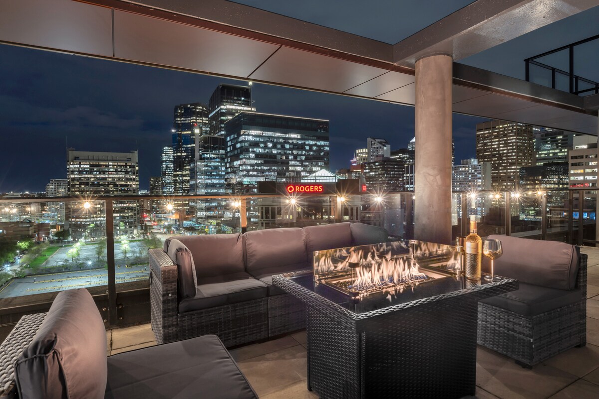 Disfruta de vistas a la ciudad y a la montaña de clase mundial y del diseño y mobiliario a nivel ejecutivo en este hermoso y moderno condominio en el piso superior con un toque industrial. Relájate en el espacio o encuéntrate en el centro de la ciudad para disfrutar de todo lo que ofrece, incluidos bares, restaurantes y eventos de la ciudad a la vuelta de la esquina. Esta increíble propiedad cuenta con todos los servicios, los servicios incluyen balcón privado de 180 pies cuadrados, gimnasio en la piscina (de temporada) y puesto de estacionamiento exclusivo.