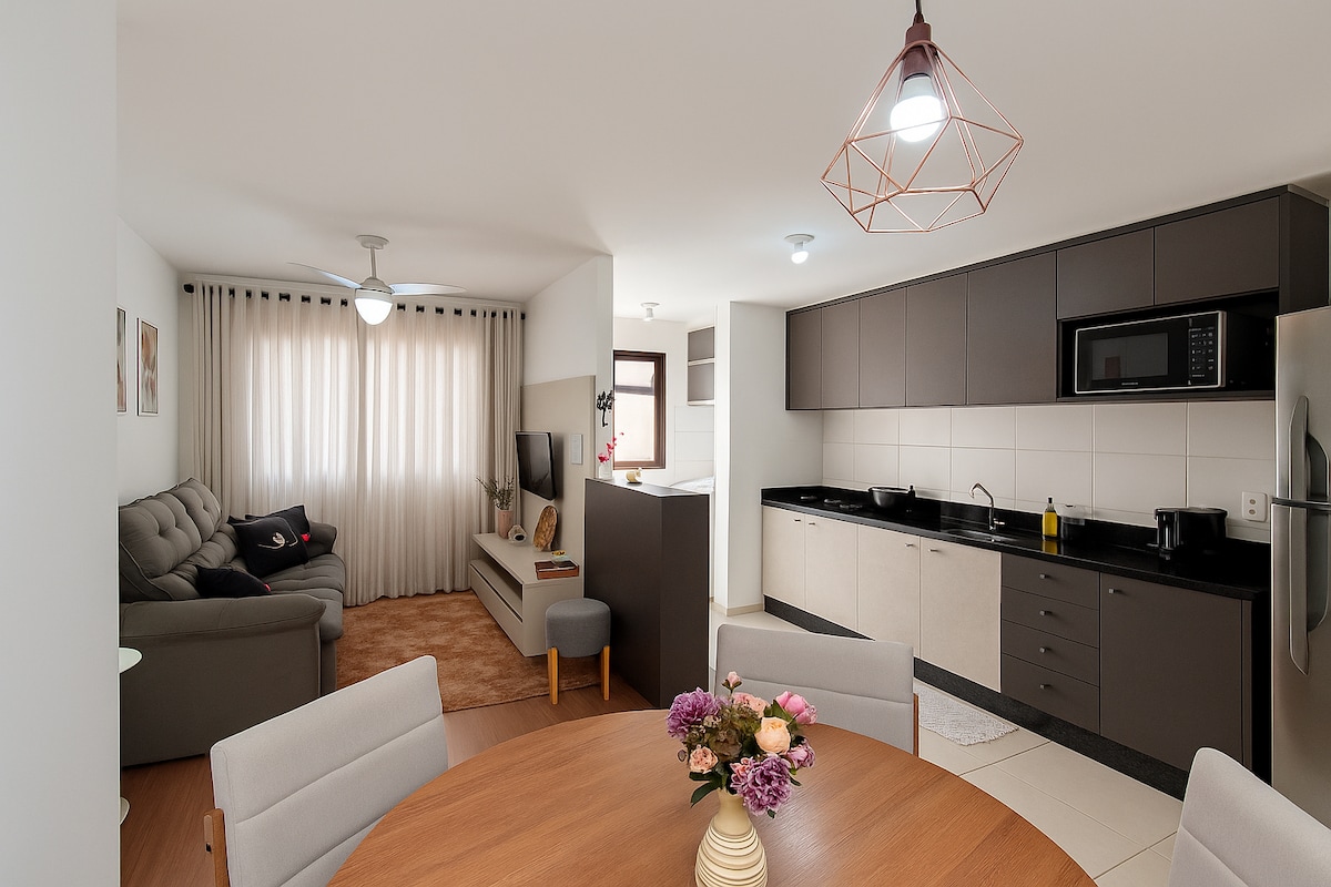 Apto Aconchegante e Moderno | Excelente ubicación 🏡✨ Alójate cómodamente en este nuevo y bien ubicado apartamento, cerca de Hosp Paraná y HC y Calil Theater, además de estar a solo 200 metros de la avenida Carlos Borges. 🛏️Capacidad para 6 huéspedes con: ✔️1 cama matrimonial 🛌 ✔️1 bicama para solteros 🛏️🛏️ ✔️1 sofá cama 🛋️ ✔️1 colchón individual ✔️1 cuna ✔️Internet inalámbrico gratuito TV ✔️inteligente📺 🍽️Cocina completa 🚗estacionamiento gratuito. ¡Ideal para familias y huéspedes que buscan comodidad y excelente ubicación!