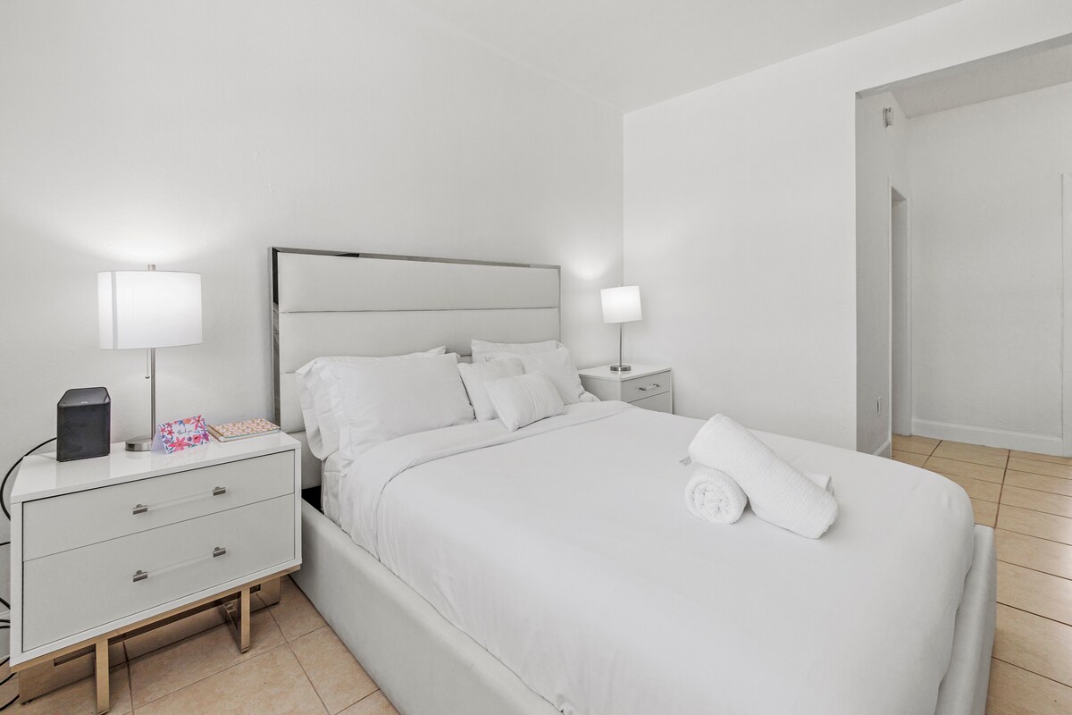 Moderno apartamento boutique con excelentes servicios ubicado a pocos pasos del famoso Distrito de Diseño de Miami. Tu unidad incluye: lavadora/secadora, cocina completa (con fogones, horno, microondas, nevera, lavavajillas, cafetera Keurig, tostadora, licuadora, táperes, utensilios, platos y utensilios de cocina). Los servicios del edificio cuentan con un hermoso gimnasio con estudio de spinning virtual, espacio de trabajo común, piscina y garaje. Tu unidad tiene un relajante balcón privado. Edificio seguro con seguridad las 24 horas, los 7 días de la semana y recepción.