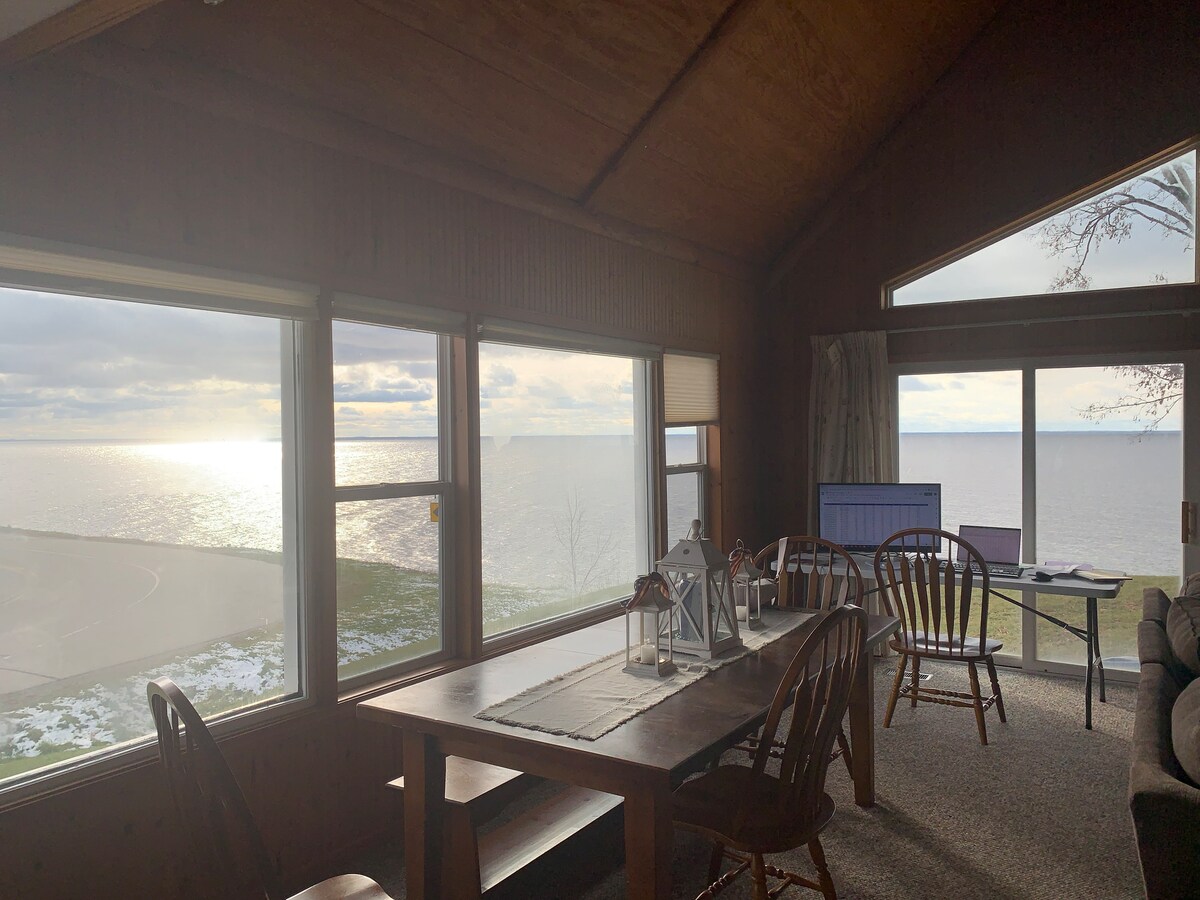 Large 3-story home directly on northeastern Lake Winnebago, 1.5 hours N of Milwaukee and Madison airports, 3 hours N of Chicago. Stunning views. Just steps to lake. Open main area. Large driveway. Games/books/cards/coloring/ping-pong. Two steps into house. Main floor bedroom includes walk-in shower. Flat yard with fire pit facing lake. Sunflowers provided for bird feeders. No pier available but boat launch < 1 mile at Calumet County Park. Seven miles to High Cli