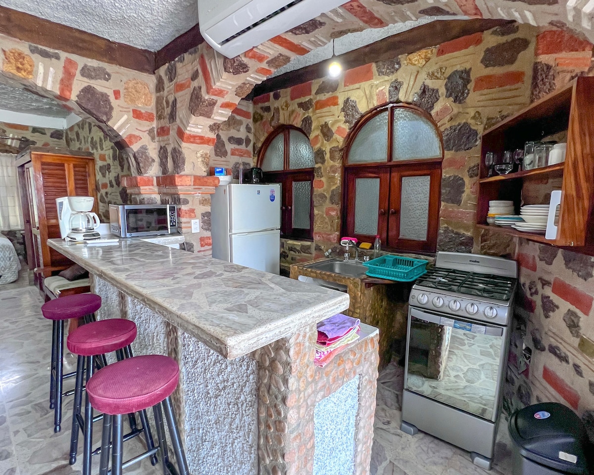 🏖 Spacious Studio Steps from the Beach – Experience Authentic Vallarta! 🌴 Includes 1 bedroom with A/C, 60” TV, full kitchen, bathroom with hot shower, living room, dining area, and a private patio to relax outdoors. Enjoy super fast WiFi, perfect for remote work. Near Romantic Zone, Hotel Zone, Malecón, and great restaurants and cafés. Walk everywhere and enjoy authentic Vallarta while staying in a quiet, stylish, well-equipped space. Ideal for couples or solo travelers.