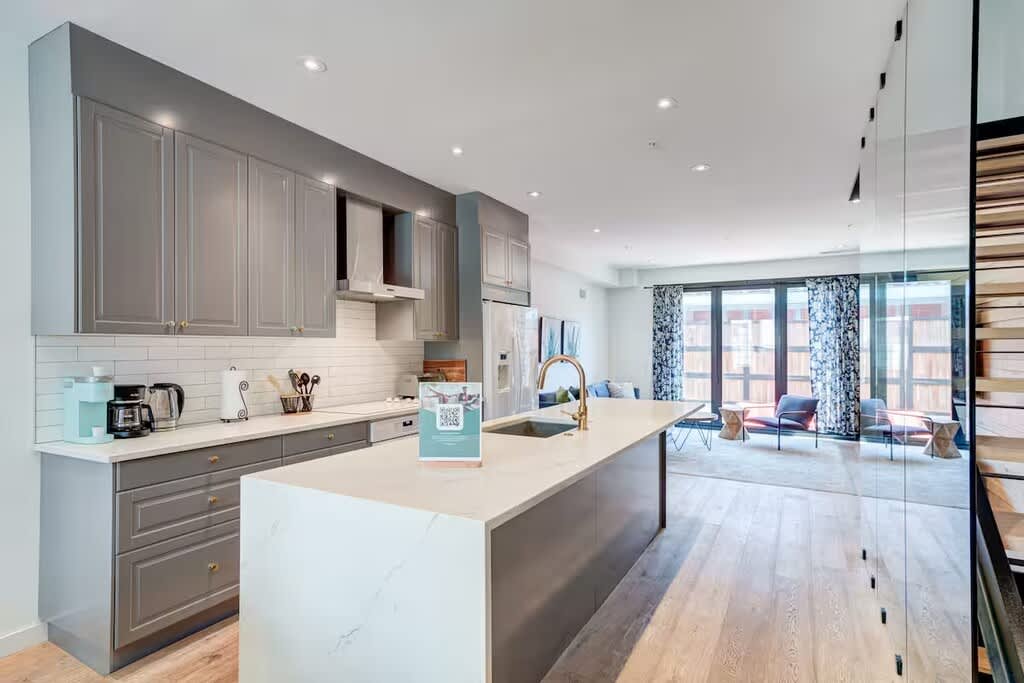 Hosted by StayRafa. Ultra modern, beautifully furnished townhome located in the heart of Fishtown down the street from cafes, restaurants & public transport. NO PARTIES! • We offer ONE parking spot per reservation OFF PREMISES in a lot. • Walk Score 95 • 1800 SQF, 3 stories • 3 BR/3 BA, patio & kitchen • Master BDR with Bath • 2 Kings, 1 Queen & 2 Twin Cot (upon request) • 75" TV in LR, 50" in downstairs BDR • Wash/Dryer • Pets Welcome ($150) • Pack N Play & High Chair upon request.