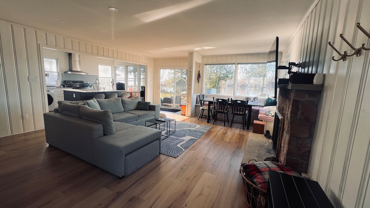 ¡Hermosa escapada a Muskoka! ¡Moderna casa de campo frente al mar de 4 estaciones! Impresionantes vistas. Ubicado en el pintoresco lago Nine Mile. Más del 70% del lago es tierra de la corona. Perfecto para hacer kayak y piragüismo para disfrutar de toda la belleza por la que Muskoka es conocida. Tenemos kayaks, una canoa y una tabla de paddle para que la disfruten. Hay mucha exposición al sol en el muelle que puedes nadar todo el día. Cerca de senderos para hacer senderismo y motos de nieve. Del 15 de mayo al de octubre, mínimo 6 noches con check-in el domingo.