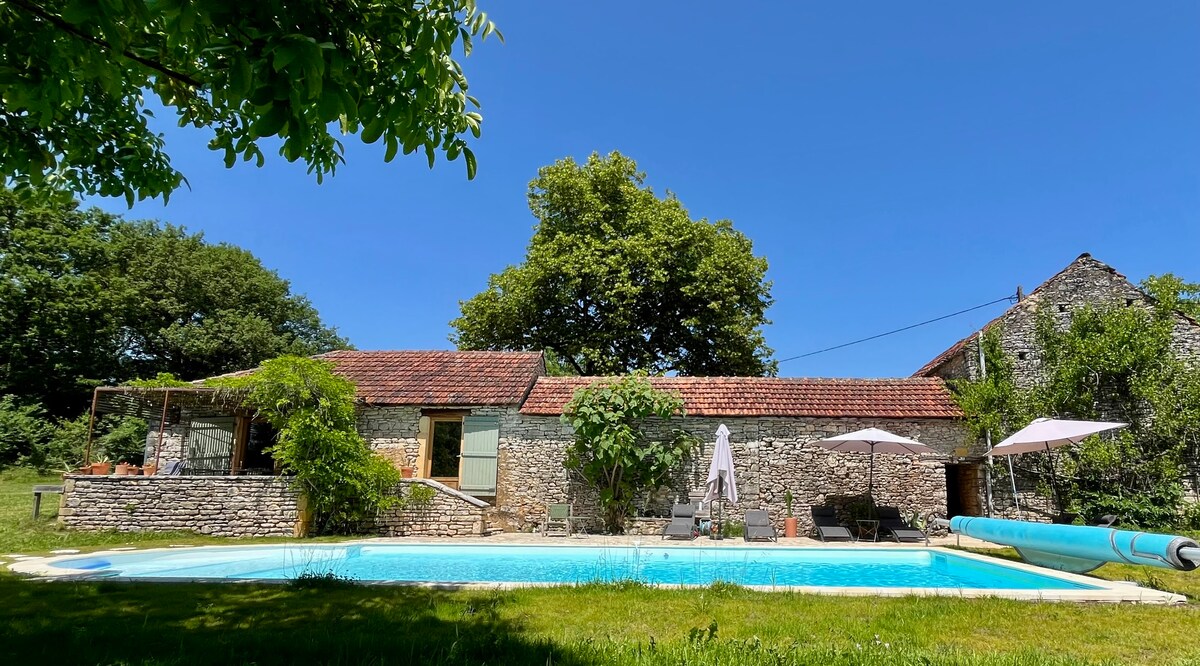Forma parte de una gran propiedad escondida del mundo exterior. La casa se encuentra al borde de hermosos jardines con piscina privada, cocina de verano y cancha de petanca, todos ellos conducen al lago privado, creando el telón de fondo para una increíble casa de vacaciones. El pueblo de Cazals, a 500 metros a pie, cuenta con un supermercado todos los domingos, 12 meses al año, así como una panadería galardonada, tienda de productos agrícolas, restaurantes, etc.