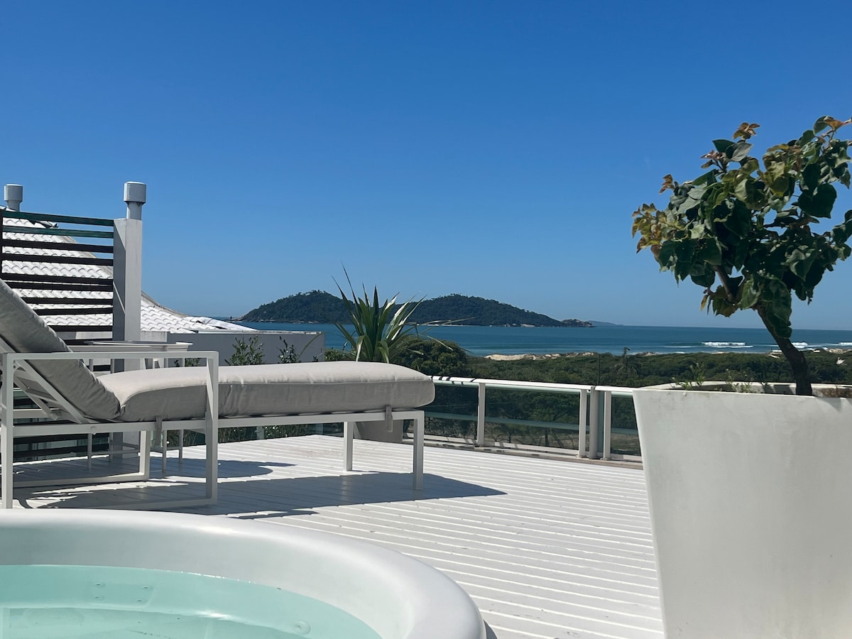 Cobertura de lujo con total privacidad, vista al mar, jacuzzi, barbacoa y gran terraza frente a la playa de Campeche, una de las playas más hermosas de Florianópolis! Pasar sus vacaciones en el condominio Thai Beach Home Spa es como estar en un resort de 5 estrellas! Con piscina cubierta climatizada, piscina infinita al aire libre, jacuzzi interior y exterior, gimnasio, parque infantil, exuberante área común. Ubicación central cerca de restaurantes, supermercados y tiendas.