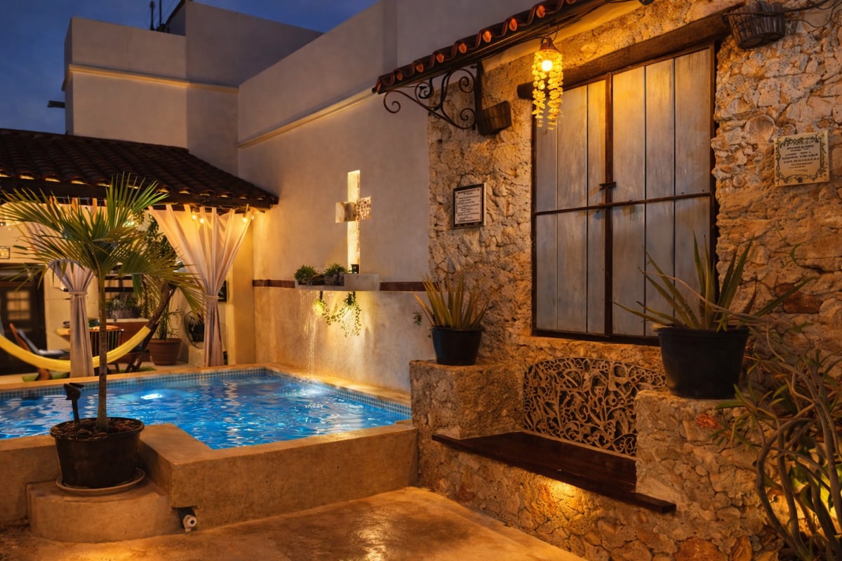 Vive la experiencia de hospedarte en una casa Patrimonio de la Humanidad, dentro de la zona amurallada. Conjuga el confort de las amenidades modernas con la belleza de la arquitectura colonial. Entre sus encantos destacan los pisos originales, techos de viga a doble altura y patios interiores. Disfruta la alberca contempla las torres de la catedral desde una hamaca en la terraza, relájate con el sonido de la fuente y para que no te olvides de recorrer la ciudad te dejamos 2 bicicletas.