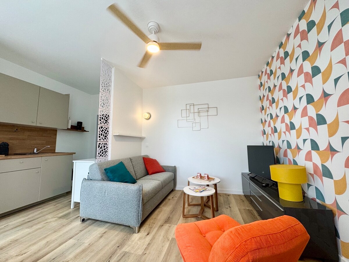 ¡Acogedor apartamento, idealmente situado para una estancia perfecta! Superficie: 46 m² – Acoge hasta 4 personas Amplia 🛏️ habitación (cama doble + amplio almacenamiento) + sofá cama doble en la sala de estar 🍽️ Cocina totalmente equipada. 🚿 Baño con ducha 📺 TV disponible (no hay streaming) ❄️ Clima reversible 🛜 WiFi de alta velocidad 🌿 Gran terraza cubierta con mesa y columpio 🚗 Estacionamiento privado, vigilado y gratuito 📍 10 minutos a pie de la estación de tren, 2 minutos de un supermercado ¡Listo para recibirle!