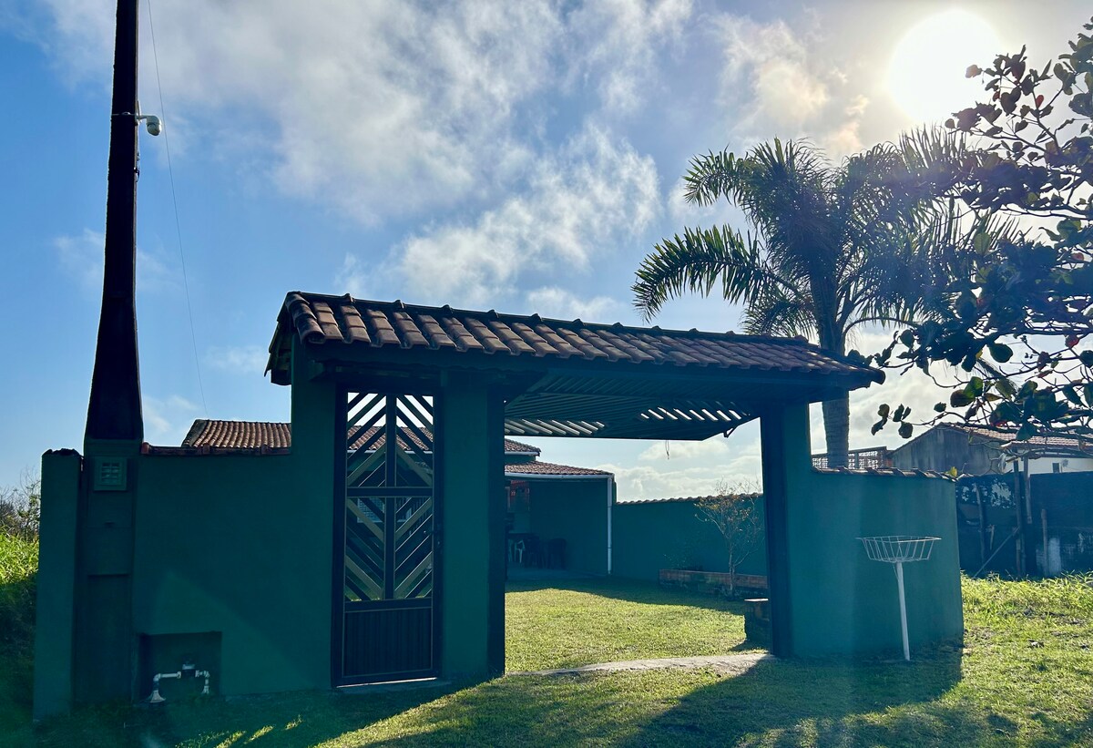 Relájate con toda la familia en este alojamiento tranquilo. Cocina bien equipada, TV de pantalla plana, ropa de cama y de baño, internet de fibra óptica y estacionamiento privado. Haz todo a pie. Situado en el centro de Ilha Comprida, tiene fácil acceso a supermercados, panaderías, farmacias, y está muy cerca de la playa de Boqueirão y la arena de conciertos. Excelente espacio externo con gran jardín, barbacoa y árboles frutales: mora, acerola, lichia, plátano, jabuticaba, papaya y guayaba.