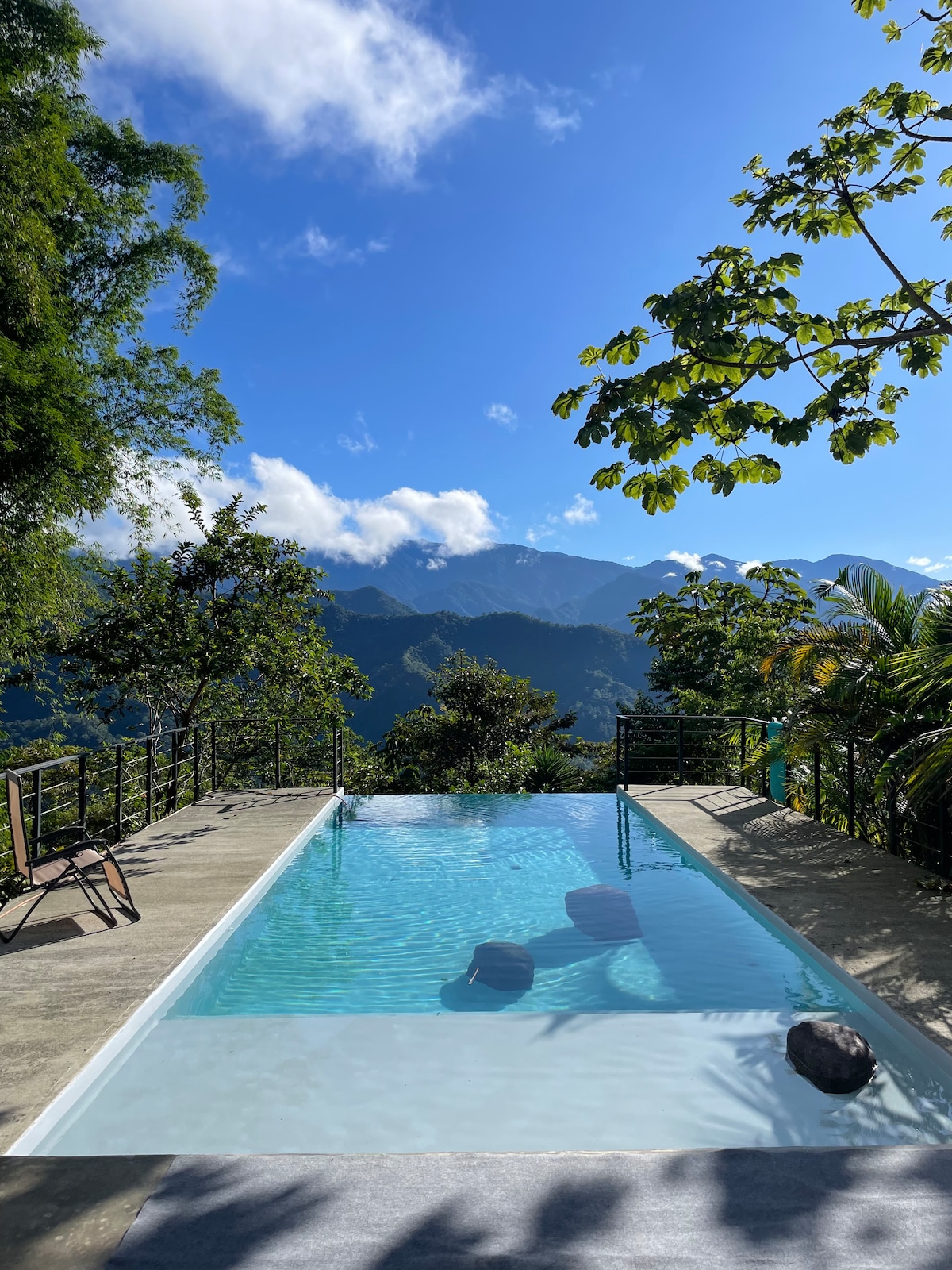 “Pasa por la puerta… toma una exhalación gigante… y relájate en pura felicidad” Acogedora casa de campo privada frente al río con acceso al río e impresionantes vistas a la montaña y a la selva. Jardines compartidos, sauna y piscina profunda. A 5 minutos a pie del pueblo de Canaán (cúpula de mariposas, gastropub, panadería, granja de quesos) y a 10 minutos en coche de Kapi Kapi (cafetería y mercado orgánico), los Jardines Secretos, la granja de truchas y las reservas de Cloudbridge/Talamanca. Fácil acceso al Parque Nacional Chirripó y 1 hora en coche a las cataratas de Nauyaca y la playa Dominical.