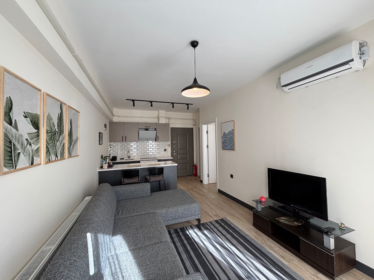 Nuestro apartamento 1+1, que se encuentra en una ubicación céntrica, a 2 minutos a pie de la playa de Yeni Kordon, tiene cocina y balcón separados. El apartamento cuenta con TV, lavadora, nevera grande y wifi. Todos los utensilios de cocina que pueda necesitar están disponibles. Con una cama para 2 personas y un sofá cama, se pueden alojar hasta 3 personas. Puede beneficiarse de estas instalaciones y de las ventajas de la ubicación céntrica mientras se aloja en nuestro apartamento.