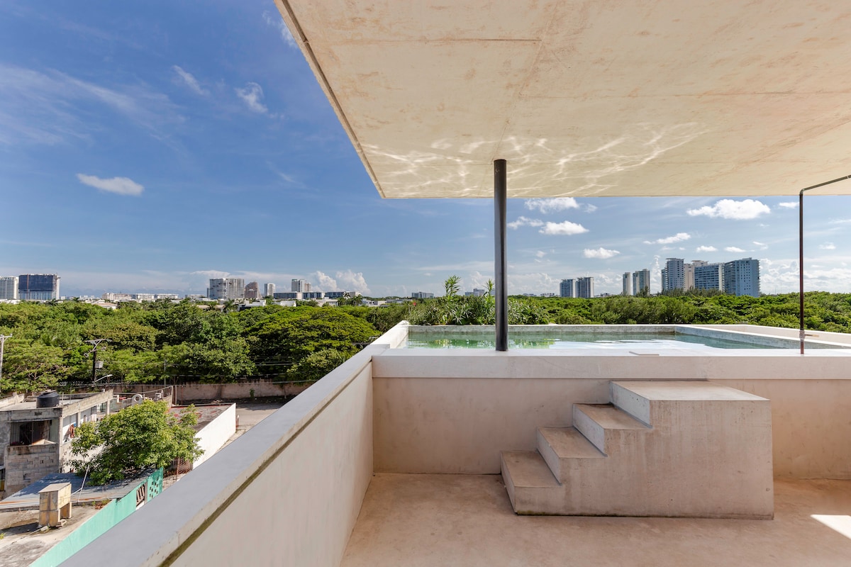 El loft tiene la ventaja de estar cerca del ferry a Isla Mujeres en Puerto Juárez, al inicio de la Zona Hotelera y al centro de la ciudad donde podrás encontrar puntos turísticos locales. A menos de 10 min caminando del edificio encontrarás: un mercado local, cafeterías, restaurantes, la parada de camiones públicos que te llevan a la playa. ¡No olvides disfrutar la azotea! Puedes usar la parrilla, tomar una buena taza de café en la mañana o una cerveza en la tarde y relajarte en la alberca.