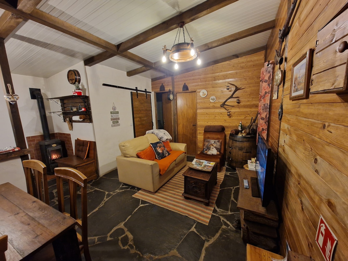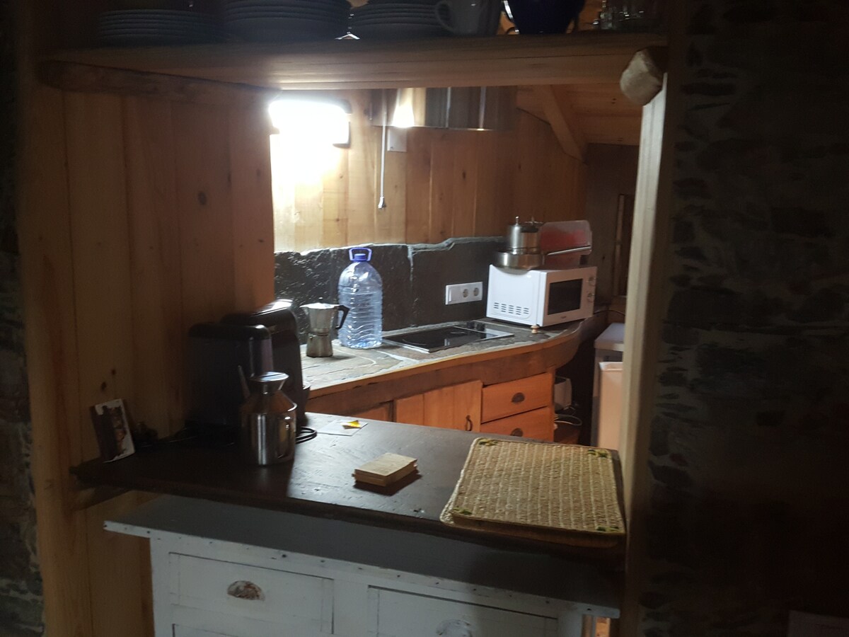 Casa con salón y cocina de planta abierta, 2 dormitorios, uno con una cama doble en la planta baja, el otro con 2 camas individuales en la planta superior y 1 baño. Tiene calefacción en las habitaciones, aire acondicionado en la sala de estar. La sala de estar tiene chimenea. Las escaleras que conducen al segundo dormitorio son escaleras Santos Dumont: inclinadas, con cada escalón retrocediendo en el lado que no se utilizará para el ascenso. Entre los servicios que ofrecemos está el desayuno, que es opcional (8 € al día, por persona).