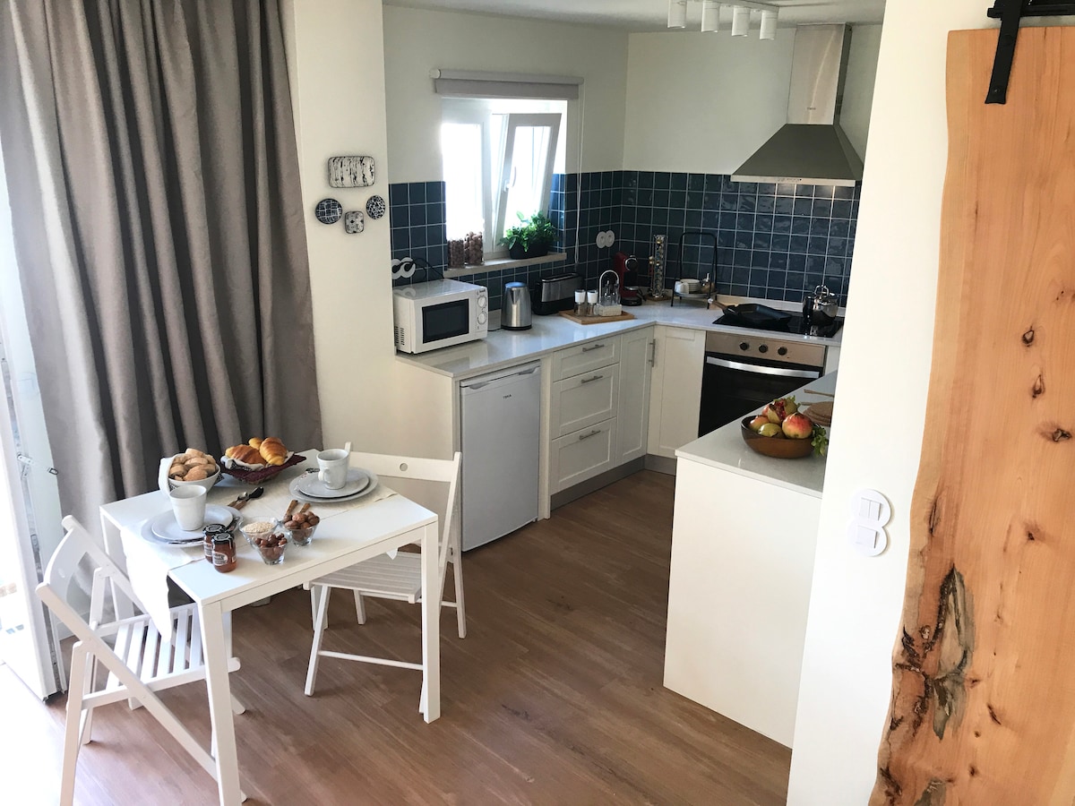 Si te apetece naturaleza, relajación o actividades al aire libre... los lodges de Casa Raposa están hechos para ti. Nuestro albergue de 30 m2 es una gran sala de estar de planta abierta con un dormitorio, salón y cocina americana. El baño está cerrado para mayor privacidad :) Disfruta de una terraza de 20 m2 orientada al sur durante todo el día. El precio incluye un refrigerio por la mañana (pan fresco, mermelada, mantequilla, café, té, zumo de naranja). ¡Nos dará gusto recibirte! Casa Raposa