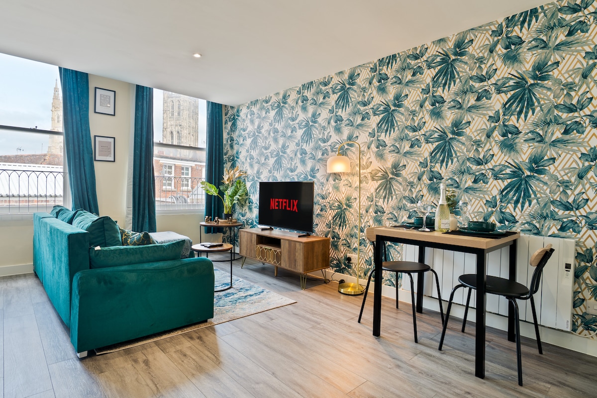 Te damos la bienvenida a The Blue Apartment + A 2 minutos a pie de la Puerta de la Catedral + Ubicación en el centro de la ciudad | Tiendas y cafeterías | Castillo histórico Barrio Quarter + Cocina moderna completa | Horno y cocina + Wifi rápido y estable de 80mb/s y TV inteligente + Haz clic en Guardar ❤️ ↗️ + A pocos pasos de las estaciones de tren este y oeste + Habitación de buen tamaño | Nueva cama tamaño king | Vestidor + Un baño encantador con bañera y ducha. + Salón (con sofá cama con capacidad para 2 personas) + Mesa de comedor para 4 personas + Ideal para universidades e escuelas de idiomas