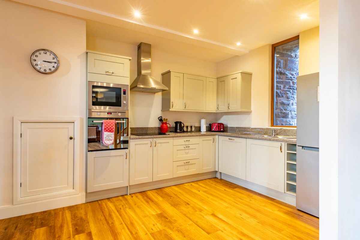 Part of a range of farm stone barns and is perfectly located for keen walkers and mountain bikers! A lovely, cosy one bedroom cottage which sleeps 2 people. Downstairs an open plan kitchen/living/dining room with stairs leading to a hall way, and en-suite bedroom with a super king size bed. Within walking distance of the Brecon Beacons and the Taffs Trail.