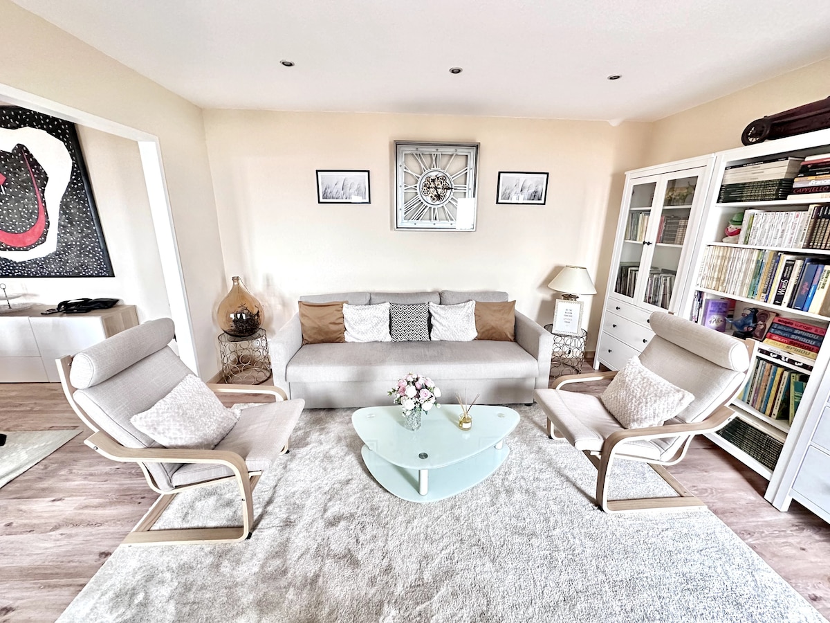 Este extraordinario apartamento se encuentra en la cuarta planta de un edificio de apartamentos en el Paseo de los Ingleses, a pocos pasos de la playa. El apartamento dispone de un gran salón-comedor con cocina abierta, así como de 2 dormitorios, 2 baños y una gran terraza. El mobiliario es elegante y desenfadado. El amplio balcón tiene vistas al mar y recibe sol (casi) todo el día. El centro de la ciudad está a 15 minutos a pie o a 5 minutos en tranvía.