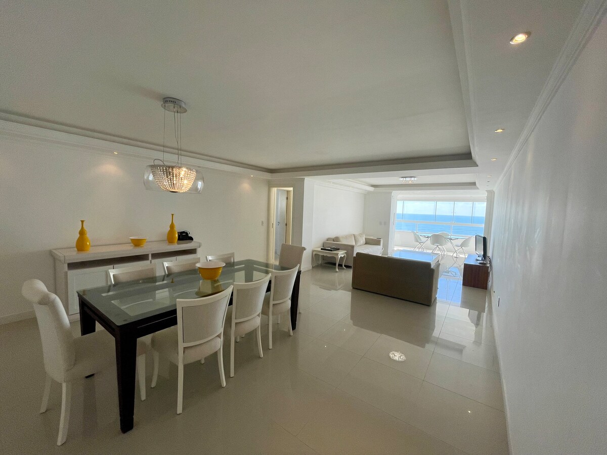 Lleva a toda la familia aquí con mucho espacio (210 m2) para divertirte. El apartamento tiene 4 dormitorios, todos con aire acondicionado, con 2 suites con bañera, baño social e inodoro. También cuenta con 3 plazas de aparcamiento, una gran zona social y una cocina completa con zona de barbacoa. Está situado cerca de mercados y de excelentes quioscos frente a la playa. Ofrecemos secador de pelo, 4 sillas de playa y sombrilla. ¡Ven y diviértete y disfruta de tus vacaciones en este hermoso apartamento con vistas al mar!