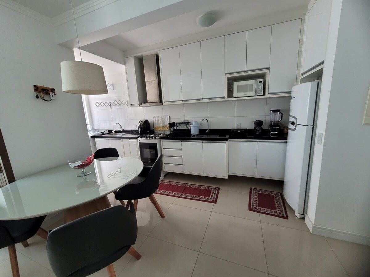 Apartamento amueblado, bien ubicado: a 2 manzanas de la playa, cerca del supermercado Andreazza (que está enfrente de un restaurante), a 600 metros del centro. Zona familiar y mucha seguridad. Delante del edificio hay una plaza de arena con pistas deportivas y un puesto de crepes. La diversión en familia y las conversaciones con amigos por la tarde están garantizadas.