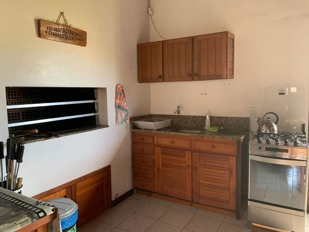 Acogedora cabaña con piscina y suite, duerme muy bien ocho personas. A dos cuadras del mar, supermercado y farmacia. A dos cuadras del mar. Suite - Cama doble. Dormitorio: cama doble + litera. Mezzanine - Cama doble. Baño social con caja. Cocina americana equipada con toda la comodidad para que todas las comidas se integren en la sala de estar para una mejor convivencia entre todos los huéspedes. Zona de barbacoa con mesa de comedor. Patio con piscina. Espacio para guardar dos autos.