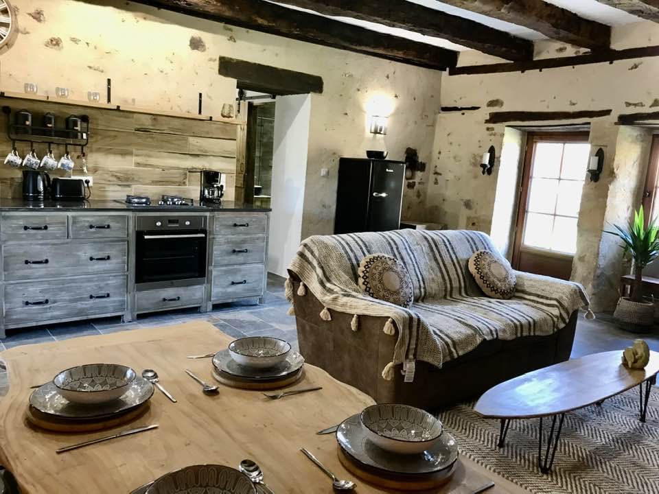 Granero de piedra renovado en 2 casas adosadas separadas por un gran espacio de jardín interior. Es una casa de campo acogedora que le propongo, ideal para descansar en el campo en la granja. Tranquila terraza cubierta con jacuzzi privado en cada casa (no se permiten niños pequeños) Ideal para 4 personas o parejas. Vista agradable, ubicación muy tranquila. Numerosas actividades posibles: piragüismo, paseos en «gabarres» por la Dordoña, castillos, pueblos, cuevas, museos, restaurantes, mercadillos...etc