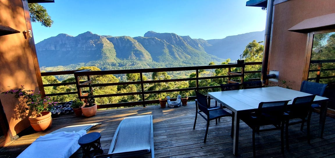 Esta es una casa única de estilo casa del árbol «cabaña en el bosque» ubicada en lo alto de una propiedad que forma parte de la Reserva de la Montaña de la Mesa, con vistas al sitio del patrimonio mundial «Orange Kloof», efectivamente la parte trasera de la reserva de la Montaña de la Mesa. A pesar de su aparente lejanía, se encuentra a solo 7 minutos del distrito central de Hout Bay y a 12 minutos del centro comercial Constantia. La casa tiene acceso inmediato a senderos para caminar y a la ruta de senderismo Vlakenberg. Todas las habitaciones tienen unas vistas impresionantes a las cordilleras.
