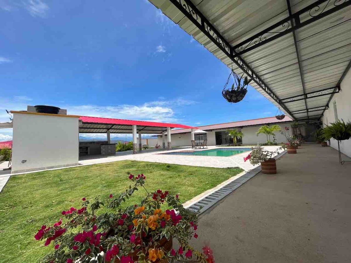Casa Campestre con amplias zonas verdes, aire acondicionado, cocina, BBQ, Piscina, avistamientos de AVES, ubicada en pleno sector turístico, agradable y confortable estadía.
