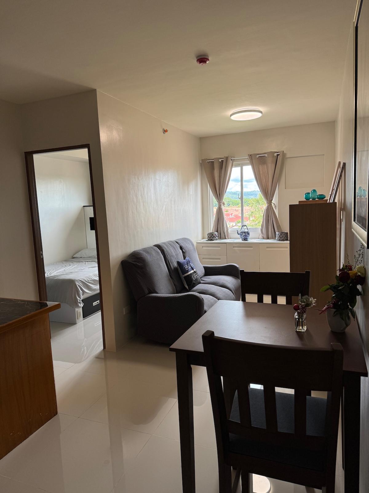 Descripción ¡Te damos la bienvenida a tu hogar lejos de casa! Este moderno y acogedor condominio entero ofrece una refrescante vista a la montaña y una comodidad inmejorable con guardia de seguridad las 24 horas, los 7 días de la semana. Ya sea que estés en la ciudad para una escapada rápida, un viaje familiar o simplemente necesites un lugar tranquilo para trabajar y descansar,encontrarás que este espacio es perfecto. Lo que te encantará: A solo 5 minutos de SM y Gaisano para ir de compras y lo esencial. A solo 3 minutos del ACE Hospital. A pocos pasos de cafeterías y cenas en restaurantes Wifi rápido Llegada autónoma