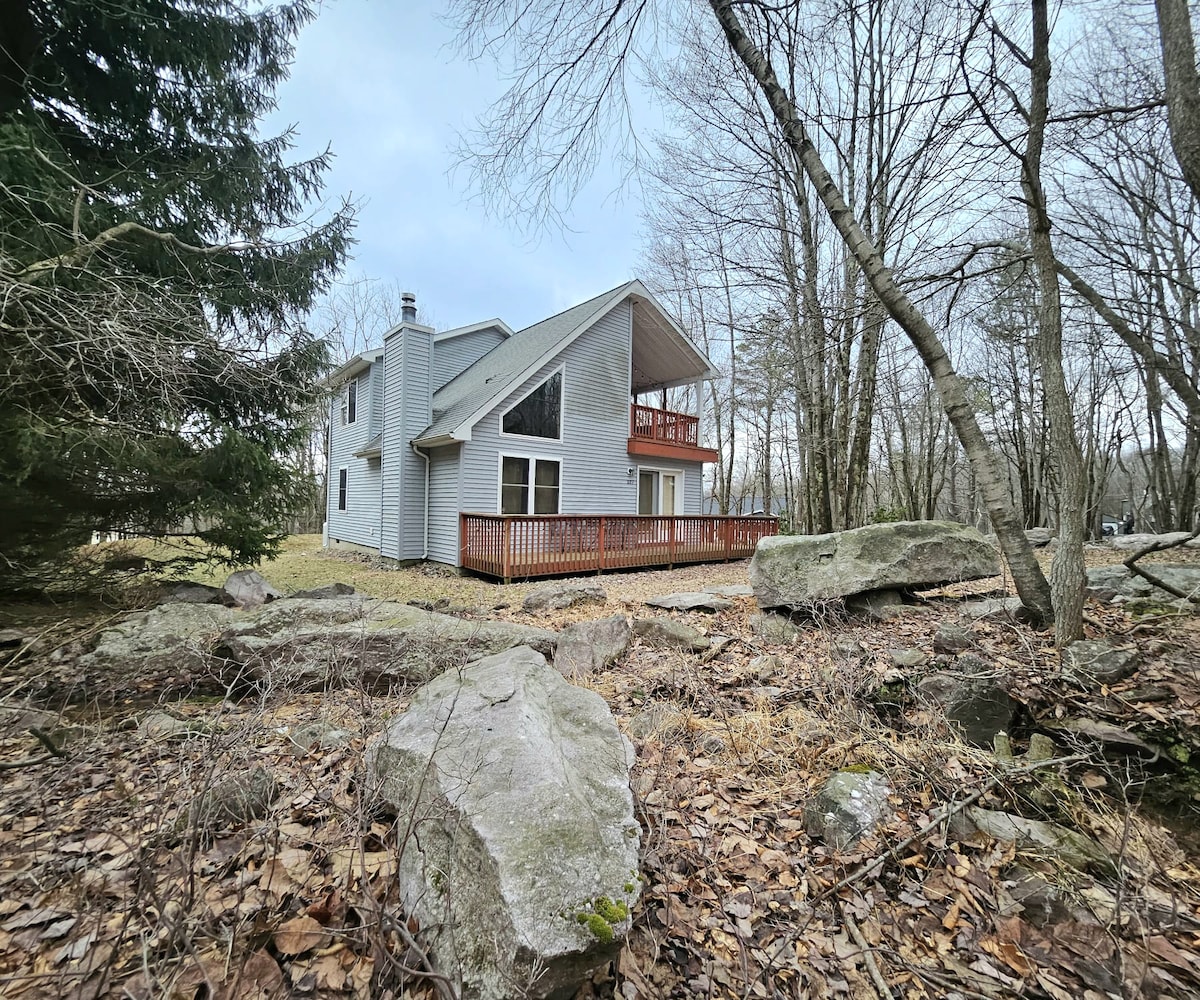 Ven a disfrutar de nuestro hermoso chalet ubicado en el corazón de las montañas Pocono con impresionantes vistas a la pista de esquí Blue Mountain. Casa decorada con buen gusto, limpia y acogedora para pasar tiempo con tus amigos y familiares y crear recuerdos felices. Convenientemente ubicada en el corazón de todas las actividades que Pocono puede compartir: pistas de esquí en invierno, lago Beltzville en verano, numerosas rutas de senderismo, todo eso a 10-20 minutos. Blue Mountain Resort ofrece curso de cuerdas altas, tirolina, escalada en roca y más actividades.