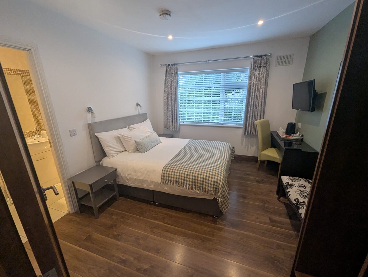 Apartamento independiente de una cama, entrada con puerta propia y plaza de aparcamiento. Incluye sala de estar/comedor, cocina con freidora de aire y microondas combinado, baño con ducha y habitación doble grande con cama tamaño king. Calefacción central de gasóleo. Situado en las afueras del pueblo de Derrinturn. Cerca de: Kildare Village: 30 minutos Hipódromo de Punchestown: 30 minutos Campo de carreras de Curragh a 29 minutos National Stud/Japanese Gardens a 29 minutos K Club Straffan a 32 minutos. Centro comercial White Water de Newbridge: 30 min Ciudad de Dublín: 40 millas