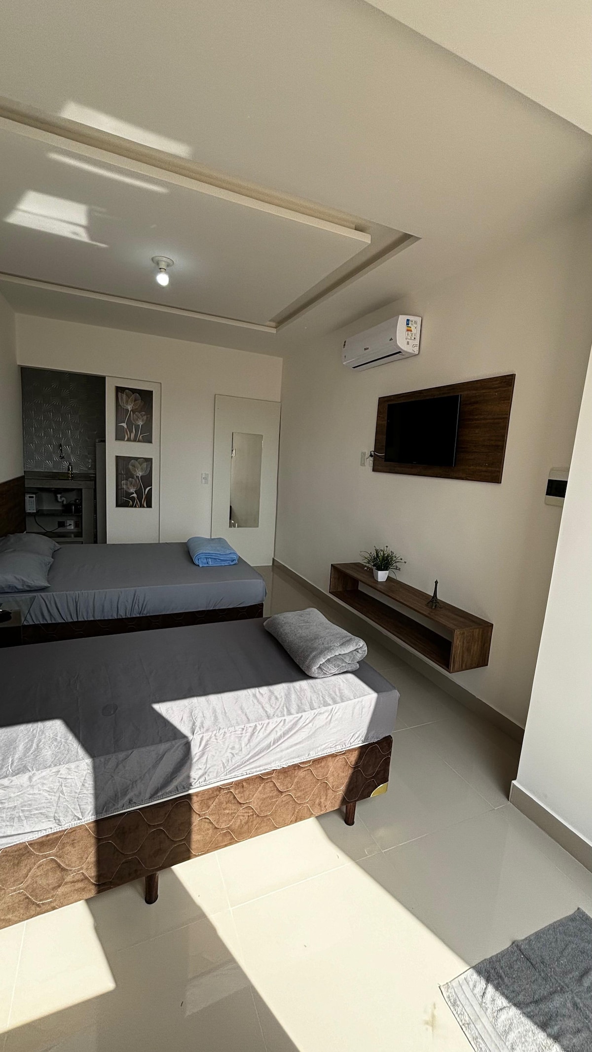 Relájate en un loft único Check-in especial a partir de las 7:00 p. m., más flexibilidad Equipado con aire acondicionado, wifi, TV inteligente, garaje, nevera, microondas, estufa, utensilios de cocina, mesa de comedor, 1 cama doble, 1 cama individual, ropa de cama y toallas. A 600 metros de la Av. 28 de marzo. A 9 minutos del centro. 13 minutos del centro comercial Road. A 40 minutos del helipuerto del faro y del puerto de Açu. Ubicado en el mejor barrio de la ciudad. Excelente beneficio de costo. Ambiente familiar, limpio y cómodo. ¡OBS No recomendado para niños!