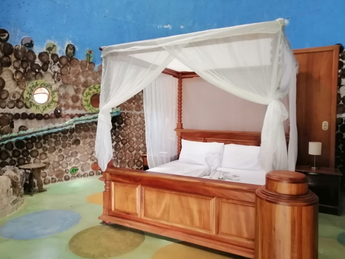 Experiencia auténtica en un estudio de arte que conecta la naturaleza en un lugar mágico, fresco; que nace de la inspiración y manos de una pareja de artistas. ✺Ideal para escritores, músicos, yoga, retiros o relajarte con tu pareja. Espacio único de construcción alternativa earthship con materiales reciclados; llantas, botellas y materiales naturales: Bambú, madera y arcilla. A 5 min del Lago Arenal y 1.15h de atractivos icónicos: Fortuna, Río Celeste, Playas, Termales y Monteverde.