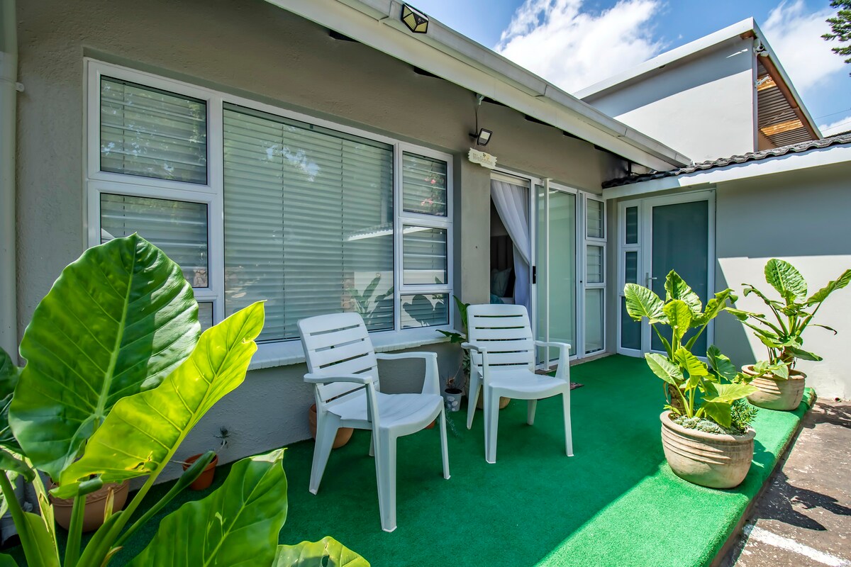 Precioso apartamento con patio en un barrio tranquilo cerca de NWU, campos deportivos y el Centro para la Salud y el Rendimiento Humano. Alojamiento independiente con una pequeña cocina estupenda y baño privado. Esta habitación tiene capacidad para 2 personas que comparten una cama tamaño queen. Zona de estar dentro y fuera en el patio junto a la fuente. Asientos adicionales al aire libre en el jardín delantero de la propiedad. Tiene un pequeño escritorio y wifi para aquellos que necesiten trabajar un poco.