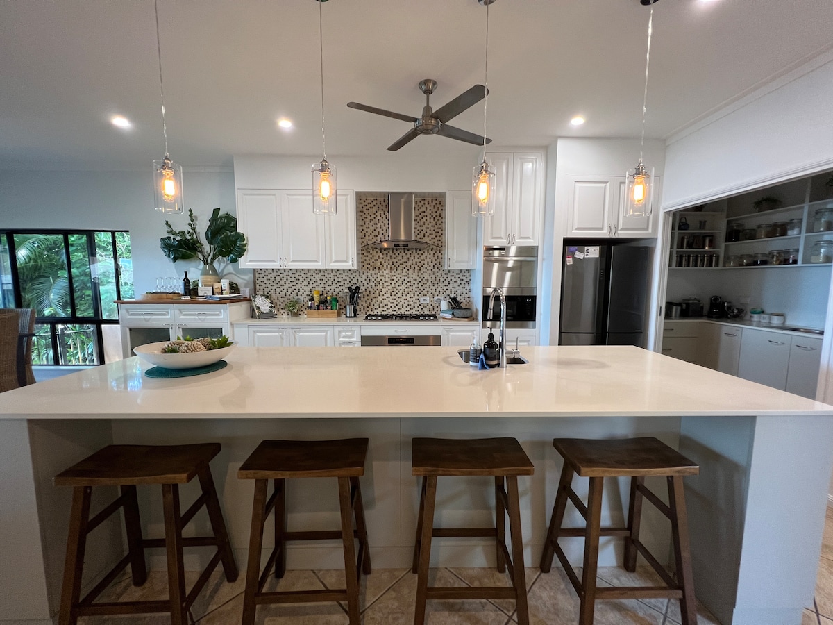 La tarifa diaria es para una pareja que utiliza el dormitorio king. Si quieres usar un dormitorio adicional, son 30 dólares por persona y noche. Reserva con la tarifa de persona adicional. Moderna casa de campo de estilo tradicional de Queensland, a solo unos minutos en coche de la playa, cafeterías, restaurantes y tiendas minoristas. Relájate en nuestra granja de frutas orgánicas con impresionantes vistas a la selva tropical patrimonio de la humanidad. Hay pequeños toques para que te sientas bienvenido y a gusto. Espacio suficiente para familias.