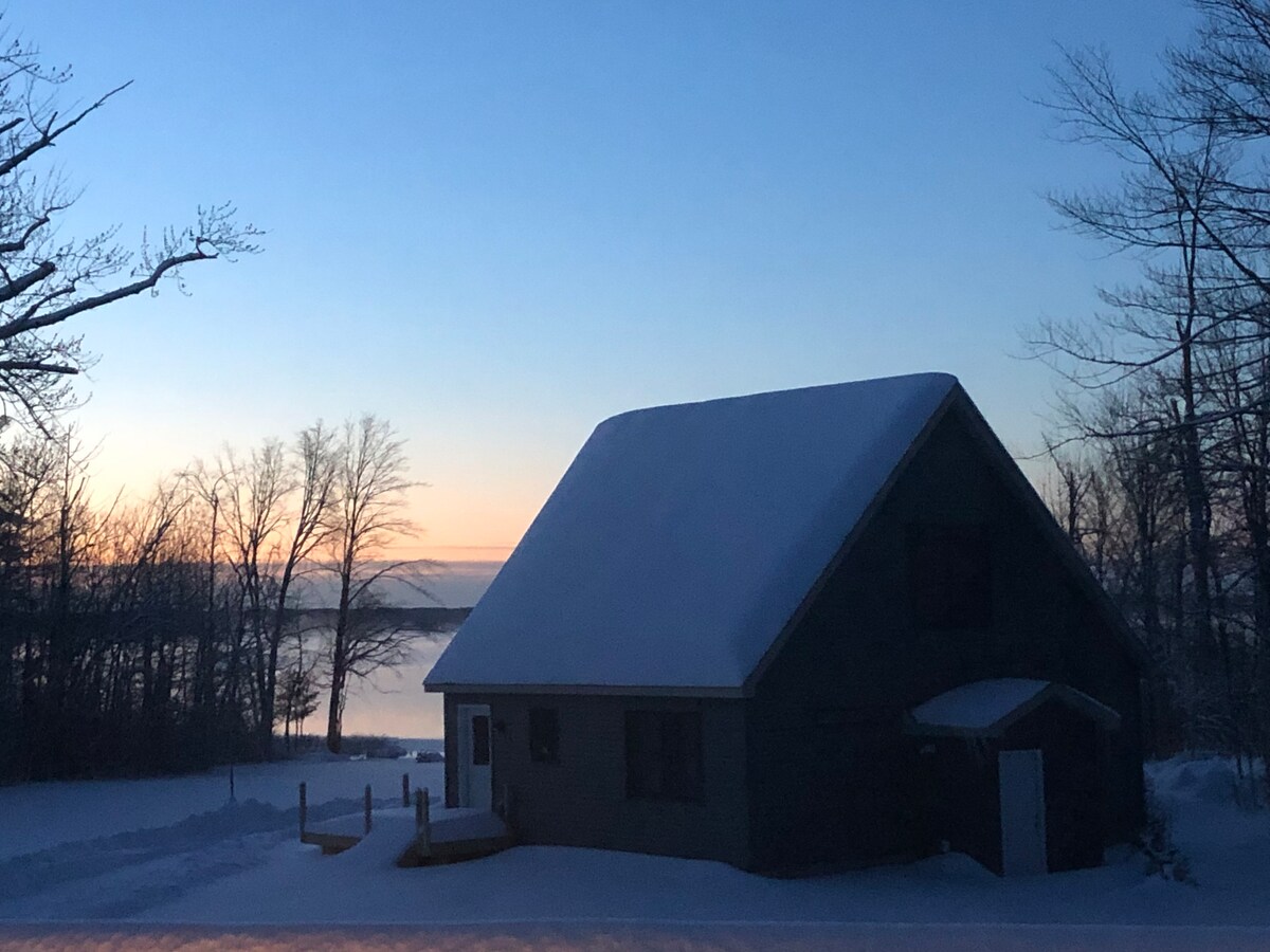 Disfruta de la tranquilidad de la naturaleza cuando te hospedes en esta casa alpina limpia y moderna con capacidad para 6 personas. ¡Se admiten mascotas y se remodela para la escapada romántica perfecta o diversión para toda la familia! Con 120 pies de acceso seguro frente al lago y vistas, una chimenea interior y dos al aire libre y muchas sillas Adirondacks para todos. Este marco A ofrece wifi de alta velocidad y streaming. A 15 minutos de restaurantes, campo de golf, esquí, motos de nieve, rutas de senderismo y ciclismo, festivales de música en verano.