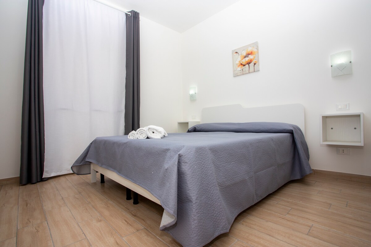 Nuevo apartamento con gran terraza en edificio independiente con aparcamiento privado y cerrado. A pocos pasos de la estación de tren. A unos 500 m del centro del pueblo de Tropea (7 minutos a pie), donde podrás pasear por las típicas callejuelas que conducen a las vistas panorámicas y a la catedral o llegar a las playas del Santuario dell'Isola. 2 dormitorios y posibilidad de añadir una cama individual o una cuna, cocina-sala de estar con sofá cama doble y terraza exterior con vistas al mar.