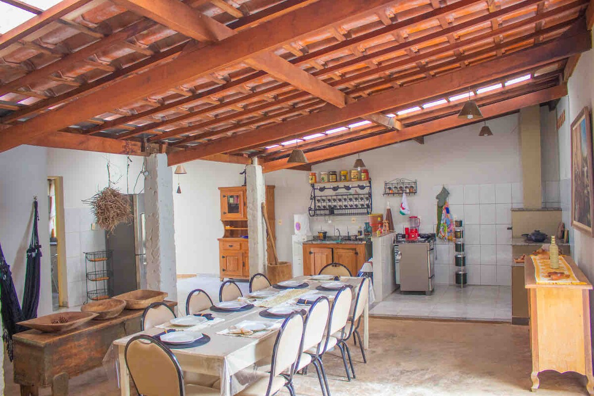 Un pequeño rincón en la tierra de las cascadas. Casa rústica, de madera, muy acogedora, en un lugar tranquilo. 2 dormitorios con camas dobles. Espacio apto para mascotas: tenemos mascotas en nuestro lugar y recibimos huéspedes a los que les encanta viajar con sus amigos de cuatro patas. Cerca del centro y cascadas de Carrancas/MG, rodeado de bosque. Es bueno para escuchar el canto de los pájaros y el descanso.
