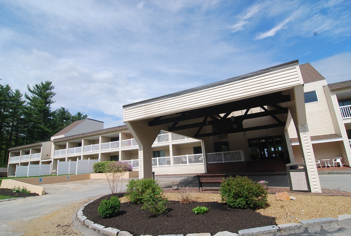 Forest Floor Hideaway: un elegante y renovado refugio con cama tamaño queen en las Montañas Blancas. Perfecta para parejas o viajeros solitarios, esta habitación cuenta con una entrada privada para una estancia sin escaleras. Trabaja o transmite con Internet de fibra de alta velocidad y un Smart TV. Incluye mininevera, microondas y cafetera. Disfruta de la piscina, los fogones y el sendero privado de The Inn & More hasta el río Saco. Ubicado cerca de North Conway. Limpio, silencioso y moderno: ¡tu mejor campamento base en la montaña!