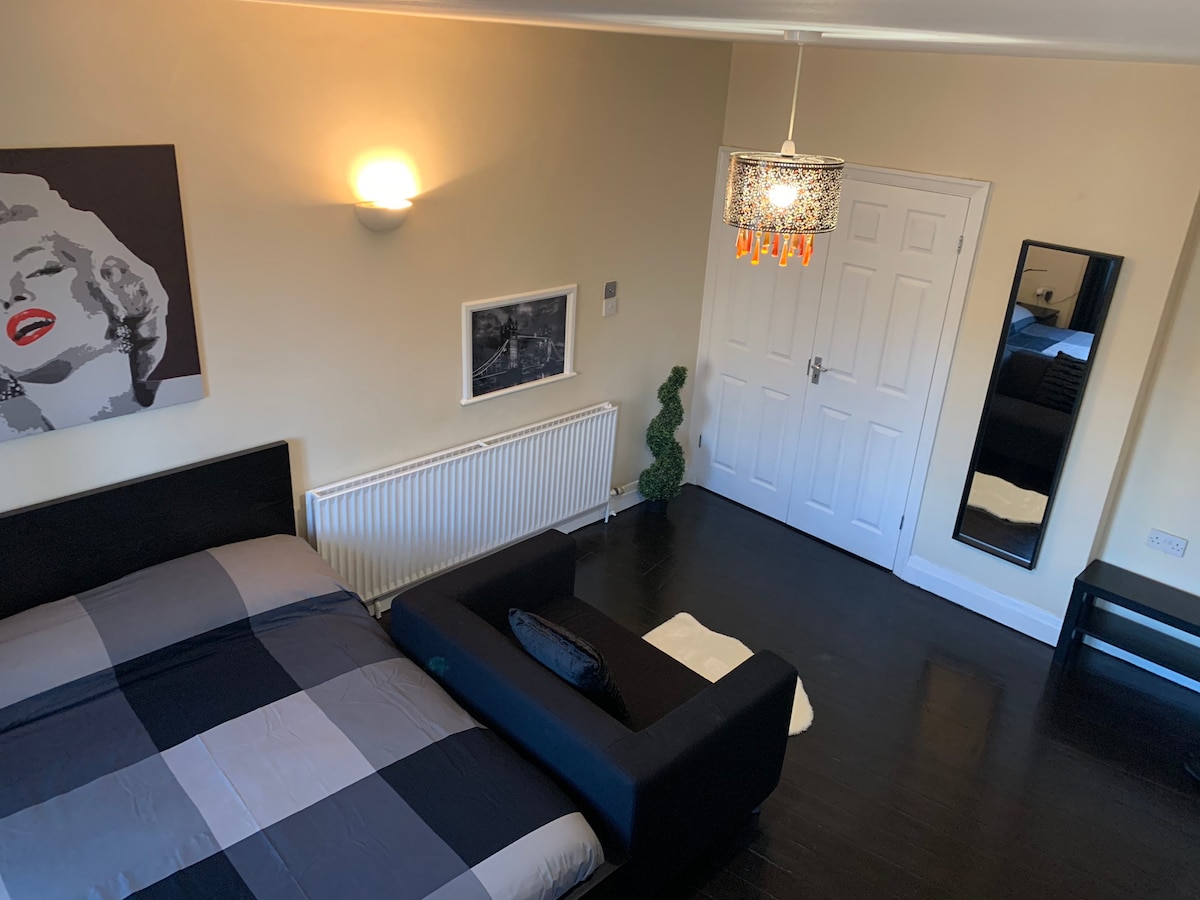 Esta es una zona recién decorada a la que se puede acceder de forma privada, situada en las afueras de Londres, cerca de las estaciones de la línea principal de Sutton y Carshalton Beeches. Estas proporcionan un acceso rápido a Londres. Gatwick y Heathrow son de fácil acceso. El Royal Marsden Hospital está cerca. A dos minutos en coche o autobús en la parte superior de la carretera que va a los terrenos del hospital. St Antony's está a unos 12 minutos en coche. Hay un dormitorio doble con baño privado con ducha, cocina y salón con TV/wifi.
