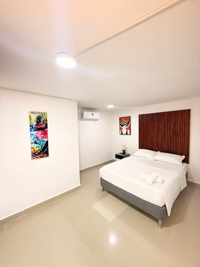 Al cruzar la puerta de Bahía Azul Boutique Hotel, una brisa marina te envuelve y te invita a descubrir la calma de Manga, uno de los barrios más auténticos y seguros de Cartagena. En esta acogedora habitación privada, el azul del mar inspira cada detalle: texturas suaves, aire fresco, WiFi y confort pensados para descansar o trabajar. A solo 5 minutos del Centro Histórico, aquí la magia caribeña se siente en cada rincón.