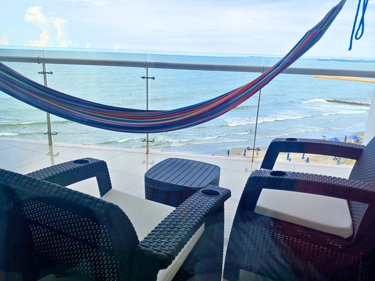 Moderno apartamento frente al mar, con vista espectacular al Caribe desde las habitaciones, sala y el balcón. Capacidad para hasta 8 huéspedes, cuenta con 2 dormitorios con A/C, 2 baños en suite y sala con sofá cama y aire acondicionado. Cocina totalmente equipada. Calentador, lavadora y secadora. Disfruta de la piscina infinita, jacuzzi y zona de juegos para niños. La playa cruzando la calle, ubicado en la mejor zona de la ciudad, ideal para familias o grupos que buscan comodidad y ubicación!